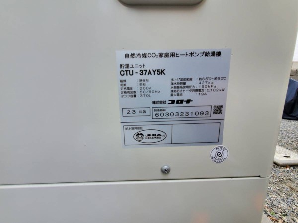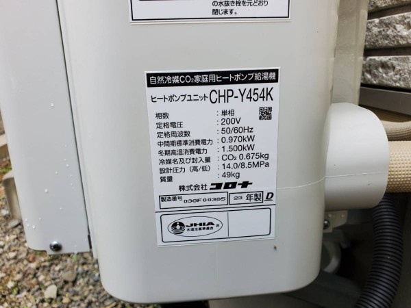 トップページ > 工事事例一覧 > 伊予市八倉 コロナ自然冷媒CO2家庭用ヒートポンプ給湯機 貯湯ユニットCTU-37AY5K、ヒートポンプユニットCHP-Y454K エコキュート交換工事