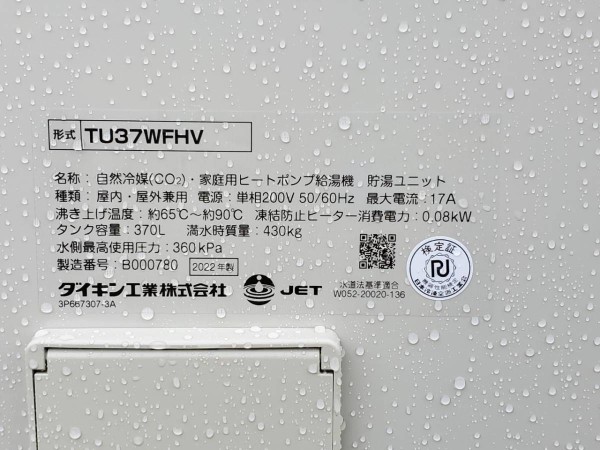 伊予市森 ダイキン自然冷媒(CO2)・家庭用ヒートポンプ給湯機 貯湯ユニットTU37WFHV エコキュート交換工事|愛媛県のエコキュート専門交換工事店|愛媛エコキュート交換ショップ補助金対応可能