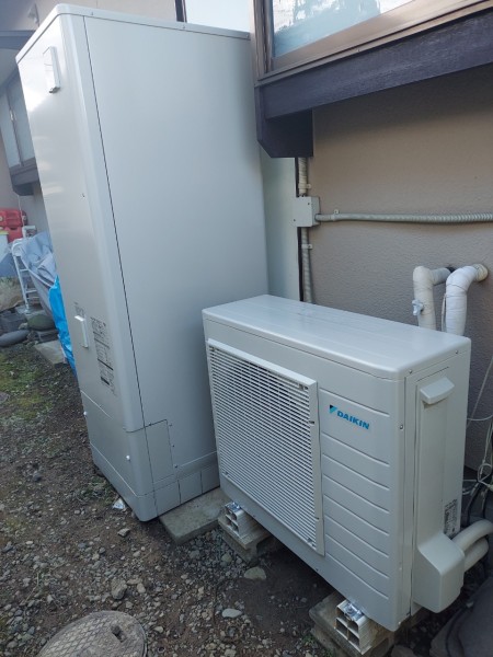 四国中央市村松町 コロナエコキュートCHP-456K→ダイキン自然冷媒CO2家庭用ヒートポンプ給湯機ヒートポンプユニットRGW45XHV エコキュート交換工事