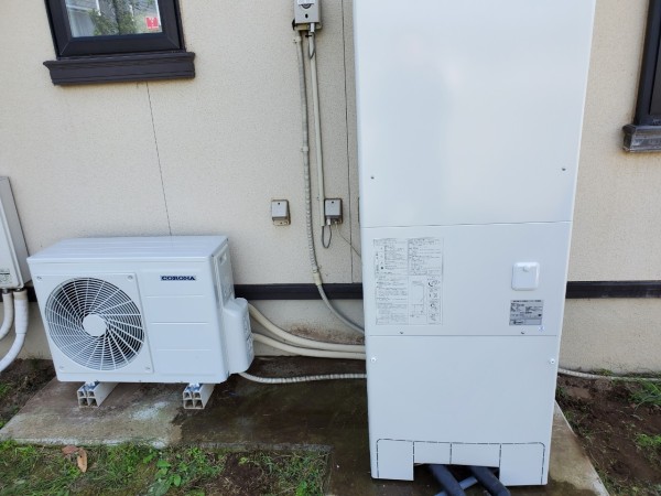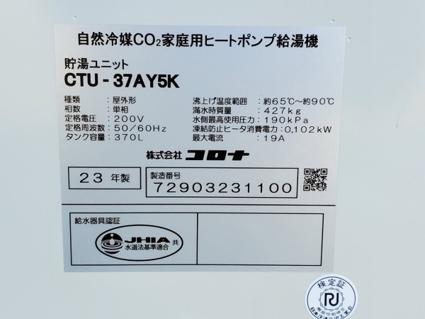伊予市八倉 コロナ自然冷媒CO2家庭用ヒートポンプ給湯機貯湯ユニットCTU-37AY5K エコキュート交換工事