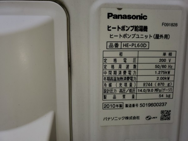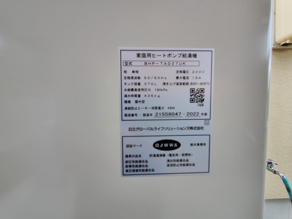 伊予市森 パナソニックエコキュートHE-PL60D→日立家庭用ヒートポンプ給湯機BHP-TAD37UK エコキュート交換工事