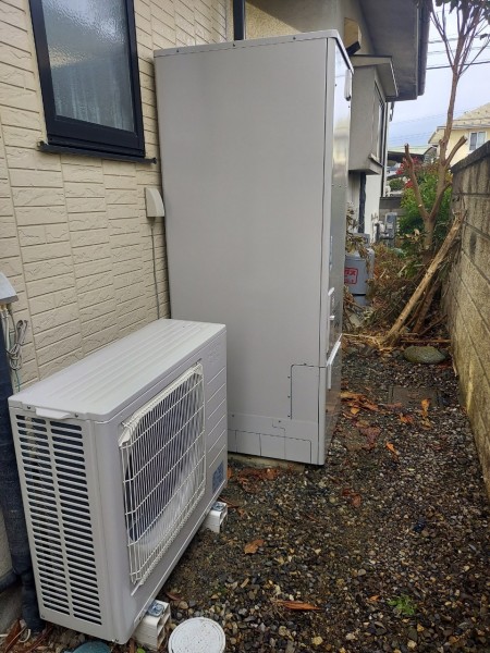 トップページ > 工事事例一覧 > 鬼北町吉波 三菱電機家庭用自然冷媒CO2ヒートポンプ給湯機貯湯ユニットSRT-STK376D エコキュート交換工事