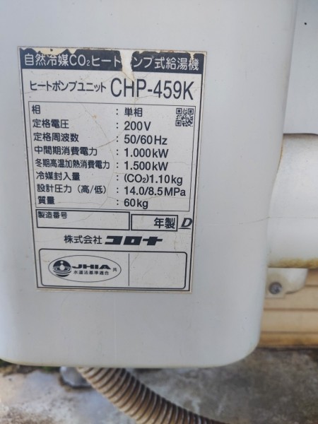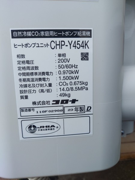 伊予市八倉 コロナ自然冷媒CO2家庭用ヒートポンプ給湯機ヒートポンプユニットCHP-Y454K エコキュート交換工事|愛媛県のエコキュート専門交換工事店|愛媛エコキュート交換ショップ補助金対応可能