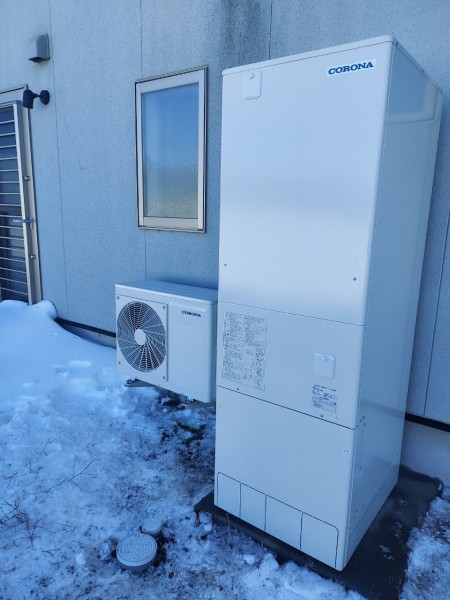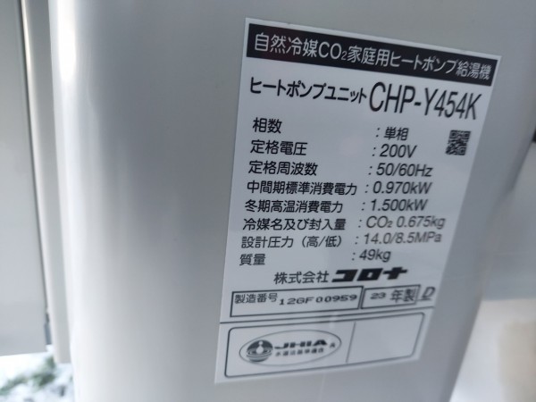 西条市野々市 コロナ自然冷媒CO2家庭用ヒートポンプ給湯機ヒートポンプユニットCHP-Y454K エコキュート交換工事