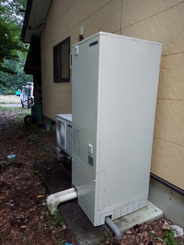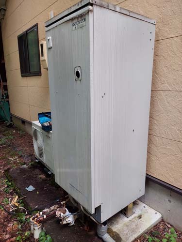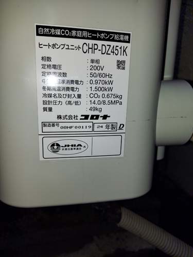伊予市平岡 コロナエコキュート→コロナ自然冷媒CO2家庭用ヒートポンプ給湯機 ヒートポンプユニットCHP-DZ451K エコキュート交換工事