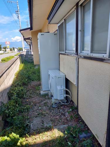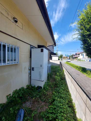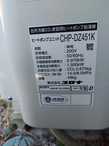 伊予市上唐川 コロナ自然冷媒CO2家庭用ヒートポンプ給湯機ヒートポンプユニットCTU-37AZ1K、ヒートポンプユニットCHP-DZ451K エコキュート交換工事