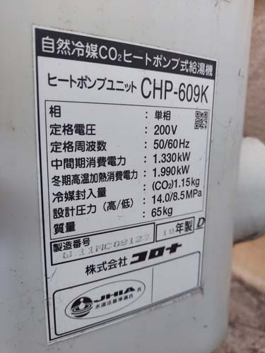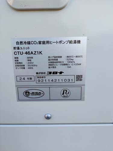 上島町魚島 コロナエコキュートCHP-609K→コロナ自然冷媒CO2家庭用ヒートポンプ給湯機ヒートポンプユニットCHP-DZ601K、貯湯ユニットCTU-46AZ1K エコキュート交換工事