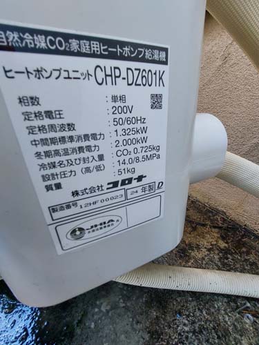上島町魚島 コロナ自然冷媒CO2家庭用ヒートポンプ給湯機ヒートポンプユニットCHP-DZ601K、貯湯ユニットCTU-46AZ1K エコキュート交換工事