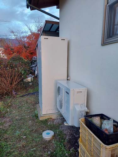 トップページ > 工事事例一覧 > 大洲市恋木 コロナ自然冷媒CO2家庭用ヒートポンプ給湯機貯湯ユニットCTU-37AZ1K、ヒートポンプユニットCHP-DZ451K エコキュート交換工事