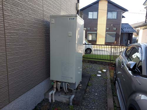 トップページ > 工事事例一覧 > 宇和島市蒋淵 コロナ自然冷媒CO2家庭用ヒートポンプ給湯機 ヒートポンプユニットCHP-DZ451K エコキュート交換工事