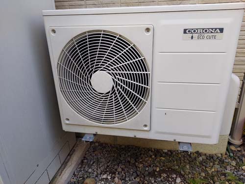 鬼北町芝 コロナエコキュート→コロナ自然冷媒CO2家庭用ヒートポンプ給湯機 ヒートポンプユニットCHP-DZ451K エコキュート交換工事