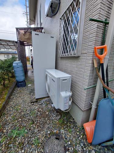 トップページ > 工事事例一覧 > 鬼北町芝 コロナ自然冷媒CO2家庭用ヒートポンプ給湯機 ヒートポンプユニットCHP-DZ451K エコキュート交換工事