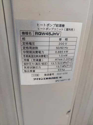 上島町弓削明神 ダイキン工業ヒートポンプ給湯機 ヒートポンプユニットRQW45JHV→コロナ自然冷媒CO2家庭用ヒートポンプ給湯機 ヒートポンプユニットCHP-DZ451K エコキュート交換工事