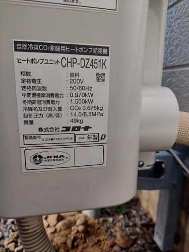 上島町弓削明神 コロナ自然冷媒CO2家庭用ヒートポンプ給湯機 ヒートポンプユニットCHP-DZ451K エコキュート交換工事