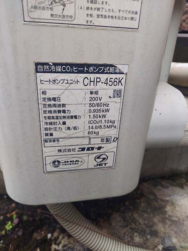 宇和島市桜町 コロナ自然冷媒CO2家庭用ヒートポンプ給湯機 ヒートポンプユニットCHP-456K→コロナ自然冷媒CO2家庭用ヒートポンプ給湯機貯湯ユニットCTU-37AZ1K、ヒートポンプユニットCHP-DZ451K エコキュート交換工事