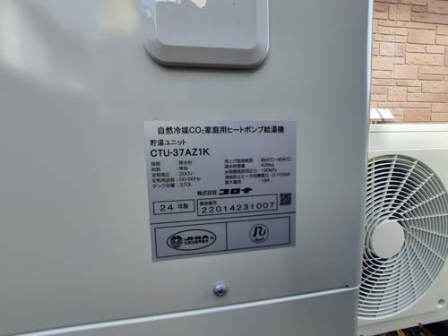 宇和島市桜町 コロナ自然冷媒CO2家庭用ヒートポンプ給湯機貯湯ユニットCTU-37AZ1K、ヒートポンプユニットCHP-DZ451K エコキュート交換工事