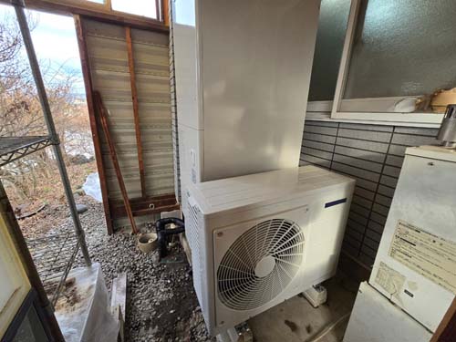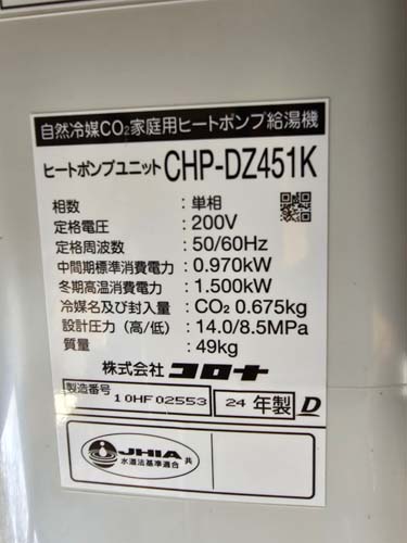宇和島市御徒町 コロナ自然冷媒CO2家庭用ヒートポンプ給湯機 ヒートポンプユニットCHP-DZ451K エコキュート交換工事