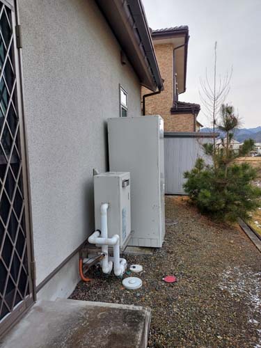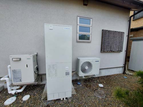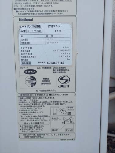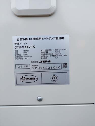 上島町弓削明神 Nationalヒートポンプ給湯機貯湯ユニットHE-37K2QK→コロナ自然冷媒CO2家庭用ヒートポンプ給湯機貯湯ユニットCTU-37AZ1K、ヒートポンプユニットCHP-DZ451K エコキュート交換工事
