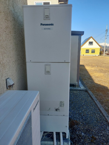 トップページ > 工事事例一覧 > 伊予市森 コロナ自然冷媒CO2家庭用ヒートポンプ給湯機 ヒートポンプユニットCHP-DZ451K エコキュート交換工事