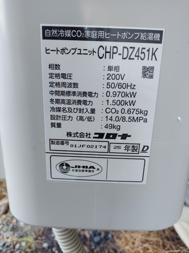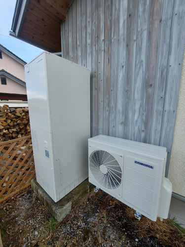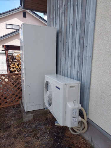 トップページ > 工事事例一覧 > 伊予市八倉 コロナ自然冷媒CO2家庭用ヒートポンプ給湯機貯湯ユニットCTU-37AZ1K、ヒートポンプユニットCHP-DZ451K エコキュート交換工事