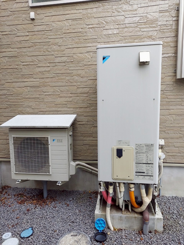 トップページ > 工事事例一覧 > 伊方町与侈 コロナ自然冷媒CO2家庭用ヒートポンプ給湯機貯湯ユニットCTU-37AZ1K、ヒートポンプユニットCHP-DZ451K エコキュート交換工事