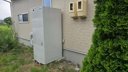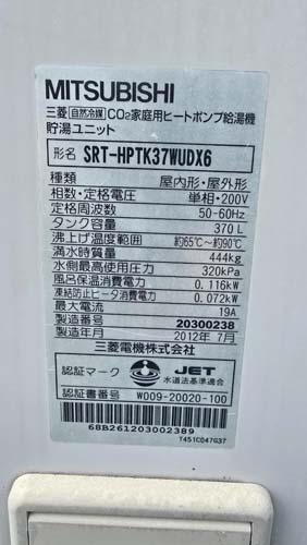 今治市馬島 三菱電機自然冷媒CO2家庭用ヒートポンプ給湯機 貯湯ユニットSRT-HPTK37WUDX6→コロナ自然冷媒CO2家庭用ヒートポンプ給湯機 ヒートポンプユニットCHP-DZ601K、貯湯ユニットCTU-46AZ1K エコキュート交換工事