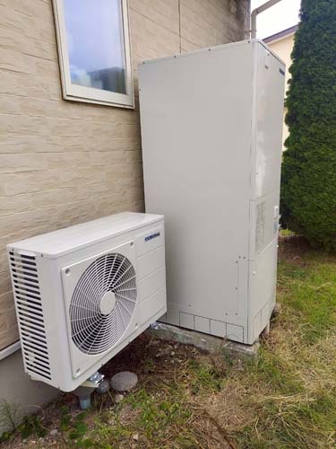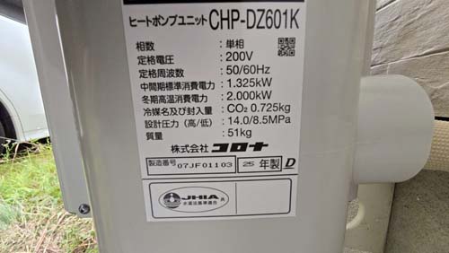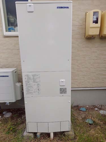 今治市馬島 コロナ自然冷媒CO2家庭用ヒートポンプ給湯機 ヒートポンプユニットCHP-DZ601K、貯湯ユニットCTU-46AZ1K エコキュート交換工事
