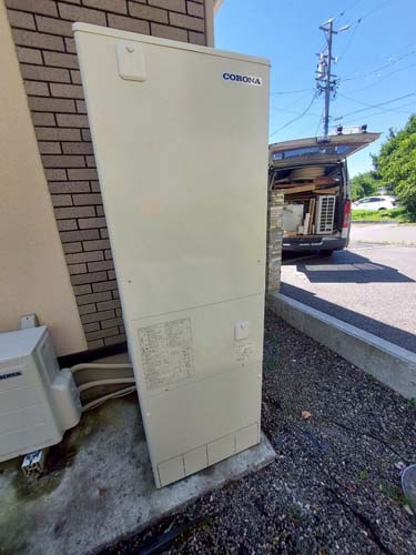 トップページ > 工事事例一覧 > 伊方町与侈 コロナ自然冷媒CO2家庭用ヒートポンプ給湯機 ヒートポンプユニットCHP-DZ451K エコキュート交換工事