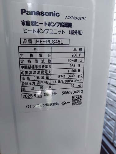 伊方町三机 パナソニック家庭用ヒートポンプ給湯機 ヒートポンプユニットHE-PLS45L エコキュート交換工事|愛媛県のエコキュート専門交換工事店|愛媛エコキュート交換ショップ補助金対応可能